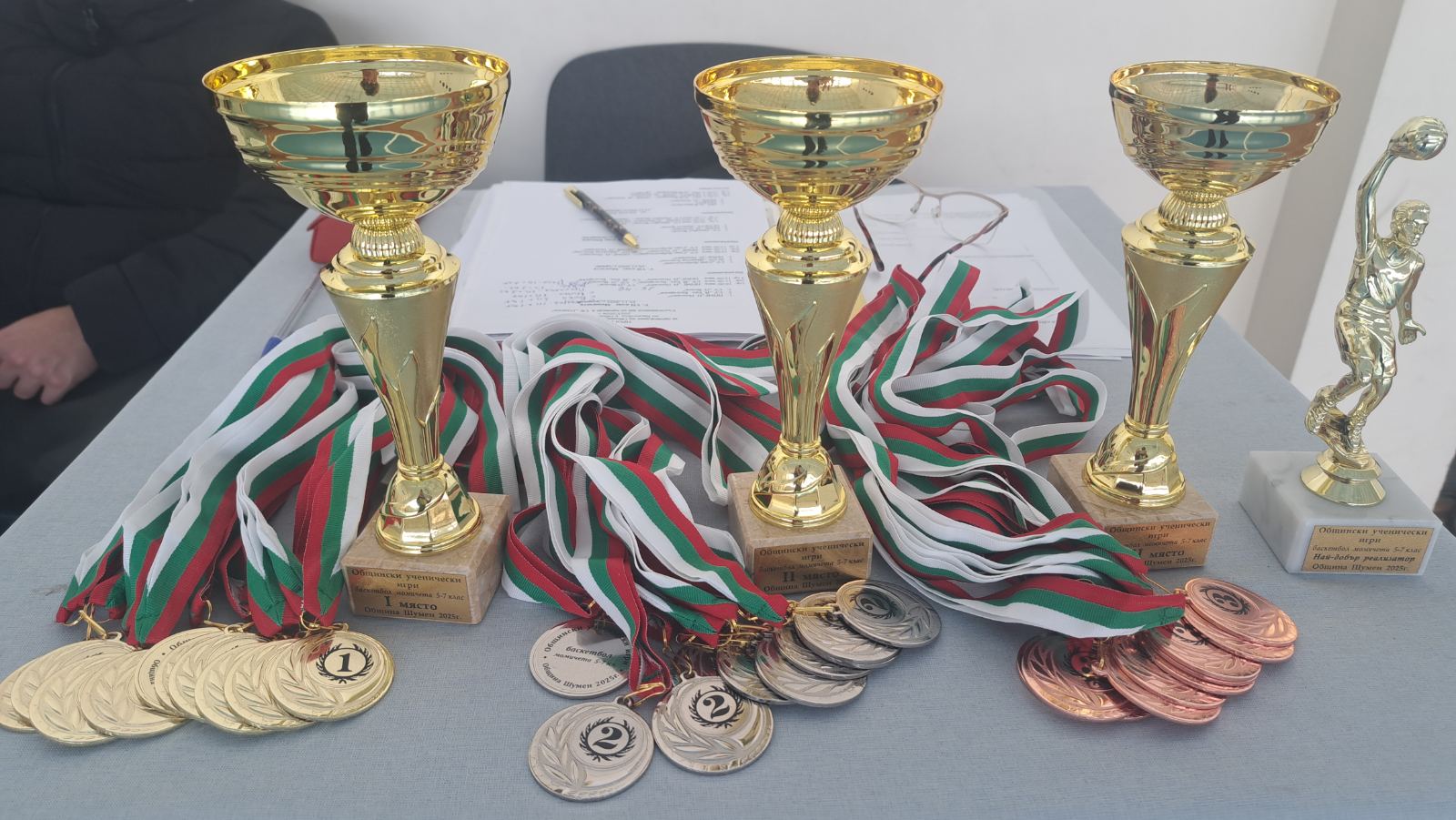 На 25.ХI.2025г. стартираха Общинките ученически игри по баскетбол за момичета 5 – 7 клас. Участваха 3 отбора, като се игра всеки срещу всеки. В първият мач момичетата от СУ „П. Волов” победиха безапелационно ППМГ „Н. Попович” с 26:46, а във вторият надиграха СУ „Й. Екз. Български” с резултат 28:59 и си извоюваха златните медали и право на участие в Областния етап. В третата среща отборите на ППМГ „Н. Попович”и СУ „Й. Екз. Български” след много промени в резултата и равностойна игра завършиха 58:59 , така възпитаничките на СУ „Й. Екз. Български” се окичиха със среброто. Приз „ Най – добър реализатор” получи Сияна Георгиева от СУ „П. Волов”. Всички отбори бяха наградени с купи, медали, грамоти и индивидуални награди осигурени от Община Шумен.